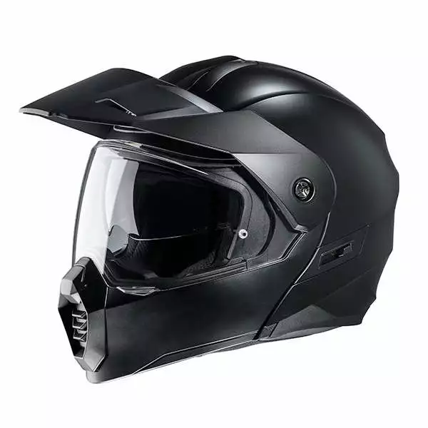 Hjc casco modulare stile fuoristrada, casco C80 Dual Sport Modular porta un nuovo look alla formazione HJC. Progettato per essere utilizzato sia su fuoristrada che su strada, questo nuovo modello permette al pilota di avere molteplici configurazioni. Il casco è composto dalla nostra Calotta in Policarbonato Composito Avanzato, che fornisce un casco leggero, con vestibilità e comfort superiori grazie alla tecnologia avanzata CAD. Il C80 offre una visuale ampia grazie alla sua visiera e una protezione solare interna di facile utilizzo. Ha anche un’ampia apertura superiore e inferiore per aiutare a mantenere il capo del pilota fresco in condizioni di guida calde. Le prese d’aria sono facili da azionare e da usare con i guanti. La configurazione multipla del casco permette al pilota di utilizzarlo con o senza frontino parasole. La mentoniera modulare utilizza una leva one-touch e facile da usare che non richiede l’uso di guanti. Il C80 è predisposto per lo Smart HJC che supporta i sistemi Bluetooth 10B o 20B (*venduto separatamente).